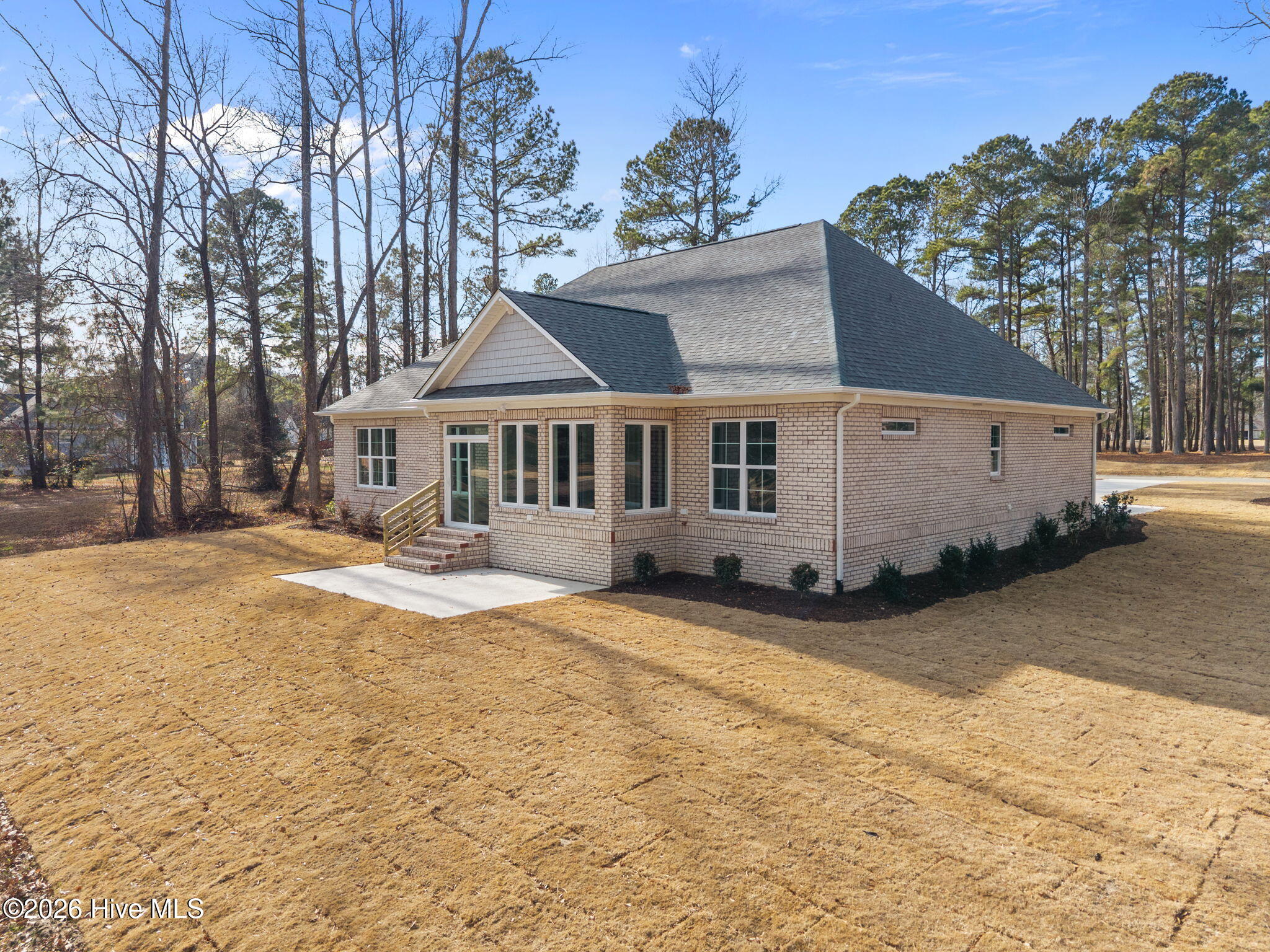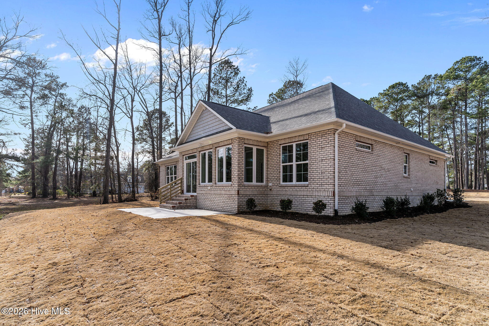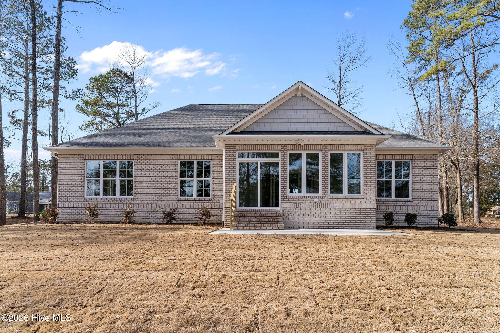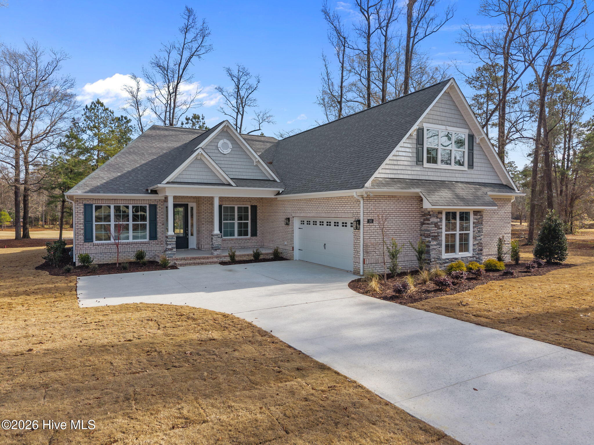 Settle into the ease of coastal living with this thoughtfully designed Coral Bay home by Award Winning Horizon Homes of Wilmington. Created with ''forever home'' living in mind, this 4 bedroom, 3.5 bath residence combines luxury finishes with comfort, accessibility, and low-maintenance convenience. Enjoy peace of mind with maintenance-free brick exterior and long-lasting 50-year shingles--so you can spend more time enjoying life and less time on upkeep. Inside, the open layout is both inviting and functional, centered around a beautifully appointed chef's kitchen complete with gas cooktop. There is abundant storage in the spacious walk-in pantry, and a large granite island perfect for casual dining or entertaining family and friends. The bright Carolina Room, with its wall of windows overlooking the golf course and ponds creates a relaxing space to unwind year-round. Split bedrooms & study all on first floor for easy first floor living. The first floor owner's suite is a private retreat, featuring separate walk-in-closets and its own climate control zone for personalized comfort. The beautiful owners bath has raised height vanities and zero entry tiled shower and access to the laundry area. 9' ceilings, fireplace, crown molding throughout, 7 -1/4'' baseboards, hardwood floors, are just a few of the upgraded features in the home. The Over-sized-finished garage is fully insulated with belt driven, Wifi, insulated garage door with added golf cart door. With emphasis on Smart Home, Energy Efficiency, our homes have radiant barrier roof decking, Low-E windows & doors, & 15 SEER Heating & Air Conditioning with Wifi Programable thermostats. Upstairs, a spacious guest suite with a full bath offers the perfect setup for visiting family or a quiet hobby space. This is more than a home--it's a comfortable, low-maintenance lifestyle designed to support you for years to come, all within one of the area's most desirable golf course community of River Landing. Near the coast of Eastern NC, River Landing is a vibrant community for those who are retired, starting a family, and everyone in between. Complete with world-class Club amenities, two 18-hole championship golf courses, a beautiful Clubhouse, glistening heated outdoor pool, expansive homesites, and scenic walking and biking trails there is something for everyone. Located just 25 minutes from Wilmington and an hour and 20 minutes from Raleigh, you can experience the charm and ease of a small hometown while being a short drive from North Carolina's most beautiful beaches and metropolitan areas. Leaseback opportunity available from builder.